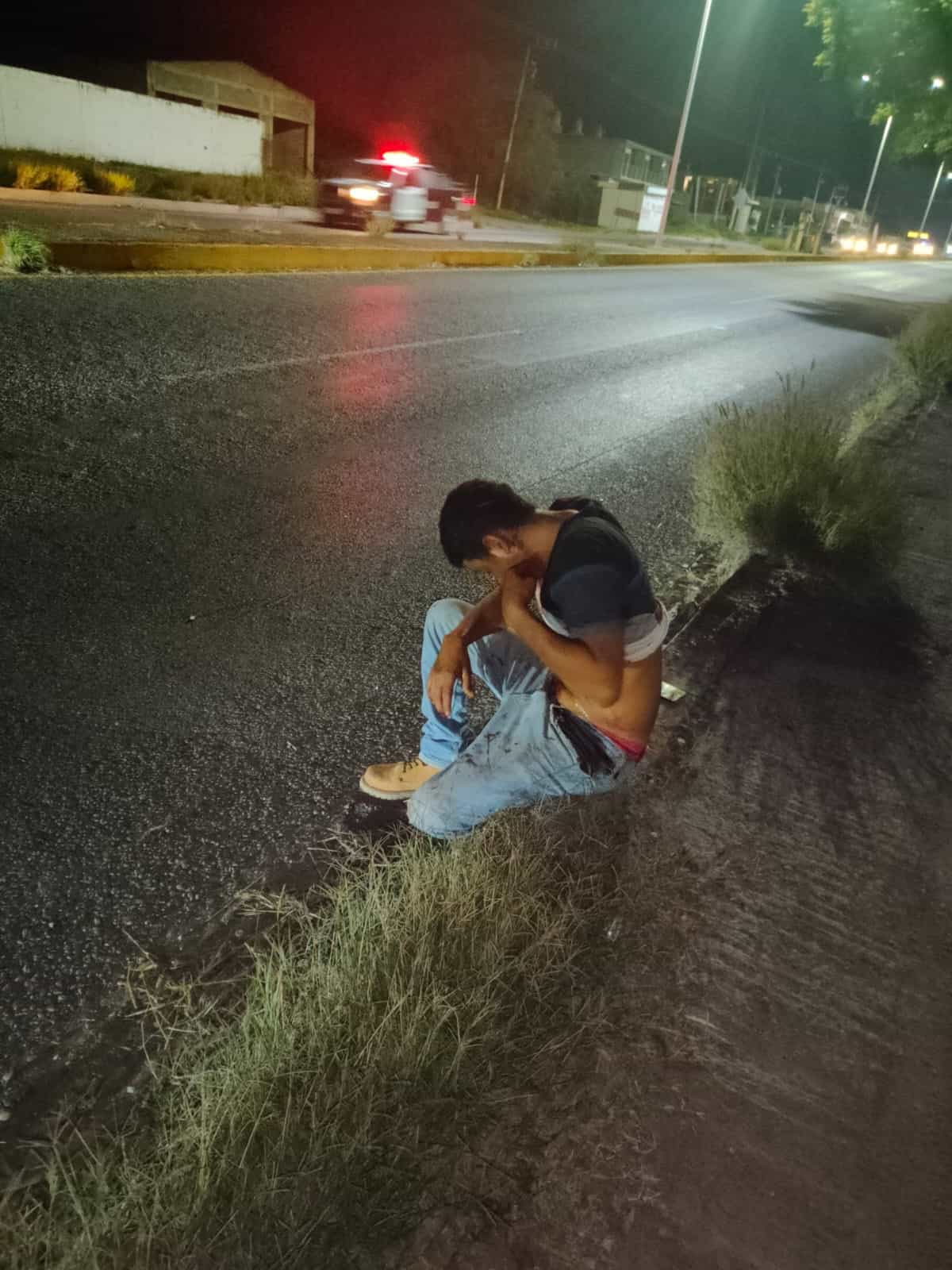 Con al menos dos lesiones producidas por proyectil de arma de fuego, joven sujeto fue localizado sentado en la acera del bulevar "Carlos Jonguitud Barrios" del municipio de Rioverde este domingo por la noche.