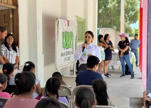 La presidenta del SMDIF Rioverde, Karina Quintero, acudió al campamento de verano itinerante en la Delegación Pastora, donde convivió con niñas y niños que participan en diversas actividades recreativas y educativas.